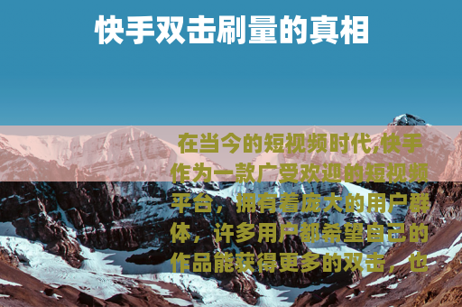 在当今的短视频时代,快手作为一款广受欢迎的短视频平台,拥有着庞大的用户群体,许多用户都希望自己的作品能获得更多的双击,也就是点赞量,以提高作品的热度和曝光度,一些所谓的“快手双击刷量服务”便应运而生。