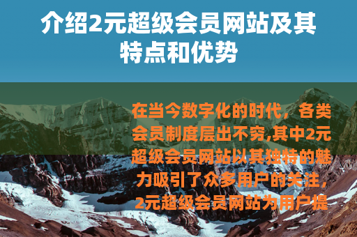 在当今数字化的时代,各类会员制度层出不穷,其中2元超级会员网站以其独特的魅力吸引了众多用户的关注。