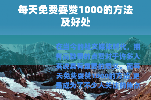 在当今的社交媒体时代,拥有高数量的点赞对于许多人来说具有重要的意义,而每天免费耍赞1000的方法,更是成为了不少人关注的焦点。