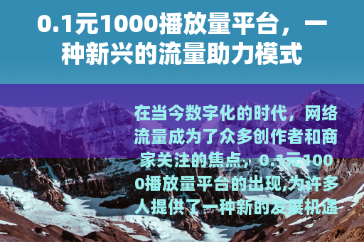 在当今数字化的时代,网络流量成为了众多创作者和商家关注的焦点,0.1元1000播放量平台的出现,为许多人提供了一种新的发展机遇。