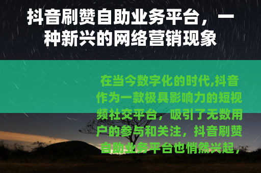 在当今数字化的时代,抖音作为一款极具影响力的短视频社交平台,吸引了无数用户的参与和关注,抖音刷赞自助业务平台也悄然兴起,成为了一个备受瞩目的话题。
