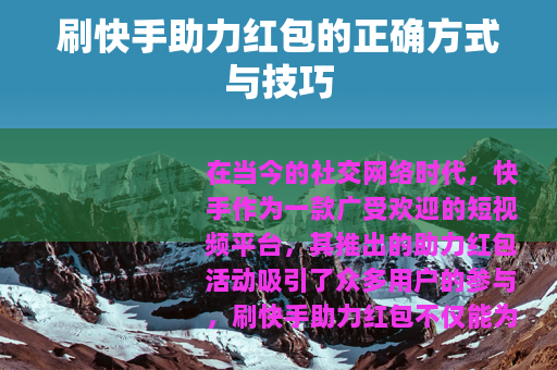 在当今的社交网络时代,快手作为一款广受欢迎的短视频平台,其推出的助力红包活动吸引了众多用户的参与,刷快手助力红包不仅能为我们带来一定的经济收益,还能增加在平台上的互动乐趣。