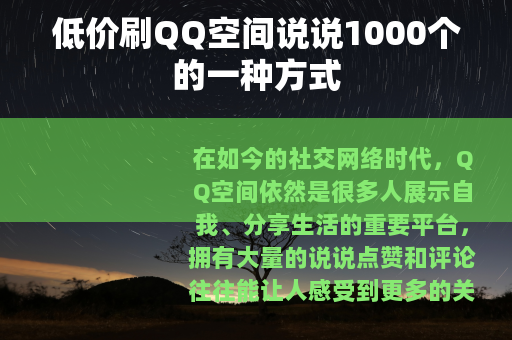 在如今的社交网络时代,QQ空间依然是很多人展示自我、分享生活的重要平台,拥有大量的说说点赞和评论往往能让人感受到更多的关注和满足感,而市场上也出现了一些声称可以低价刷QQ空间说说1000个的服务。