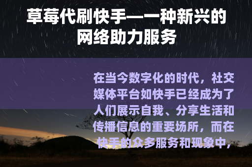 在当今数字化的时代,社交媒体平台如快手已经成为了人们展示自我、分享生活和传播信息的重要场所,而在快手的众多服务和现象中,草莓代刷快手逐渐走进了大众的视野。