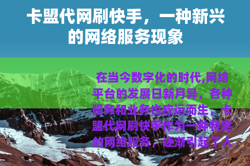 在当今数字化的时代,网络平台的发展日新月异,各种服务和业务也应运而生,卡盟代网刷快手作为一种特定的网络服务,逐渐引起了人们的关注。