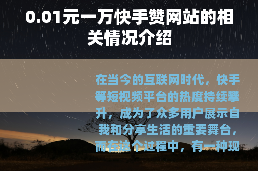 在当今的互联网时代,快手等短视频平台的热度持续攀升,成为了众多用户展示自我和分享生活的重要舞台,而在这个过程中,有一种现象引起了不少人的关注,那就是0.01元一万快手赞的网站。