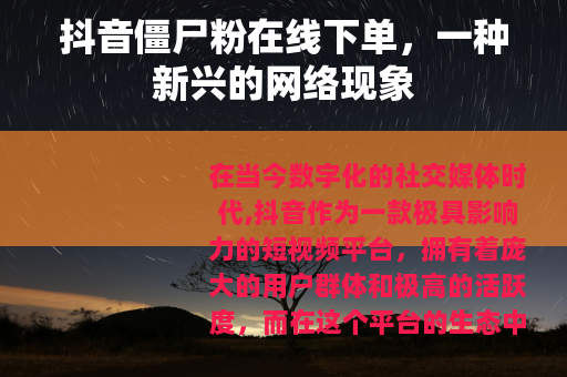 在当今数字化的社交媒体时代,抖音作为一款极具影响力的短视频平台,拥有着庞大的用户群体和极高的活跃度,而在这个平台的生态中,出现了一种引人注目的现象——抖音僵尸粉在线下单。