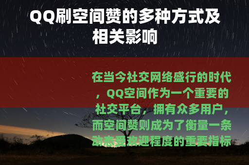 在当今社交网络盛行的时代,QQ空间作为一个重要的社交平台,拥有众多用户,而空间赞则成为了衡量一条动态受欢迎程度的重要指标之一,QQ刷空间赞的现象也随之出现。