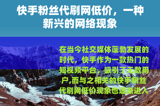 在当今社交媒体蓬勃发展的时代,快手作为一款热门的短视频平台,吸引了无数用户,而与之相关的快手粉丝代刷网低价现象也逐渐进入了人们的视野。