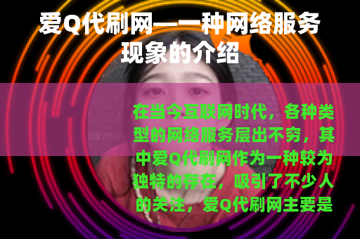 在当今互联网时代,各种类型的网络服务层出不穷,其中爱Q代刷网作为一种较为独特的存在,吸引了不少人的关注,爱Q代刷网主要是为用户提供一系列与QQ相关业务的代刷服务,例如QQ空间的点赞量、评论数、访客量,QQ会员的成长值,以及QQ游戏的等级提升等等。
