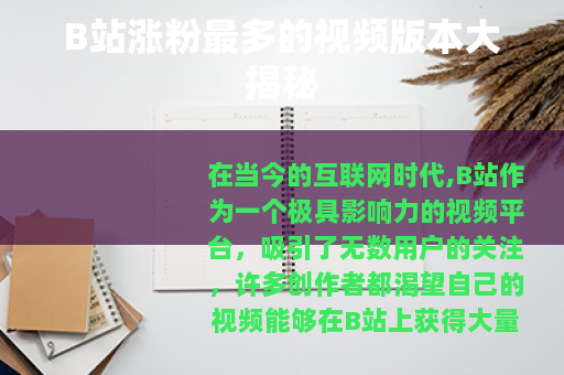 在当今的互联网时代,B站作为一个极具影响力的视频平台,吸引了无数用户的关注,许多创作者都渴望自己的视频能够在B站上获得大量粉丝,从而实现自己的创作价值,大家都很好奇,B站涨粉最多的视频是哪个版本呢?