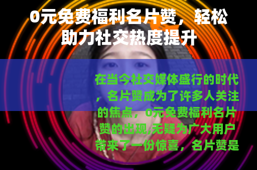 在当今社交媒体盛行的时代,名片赞成为了许多人关注的焦点,0元免费福利名片赞的出现,无疑为广大用户带来了一份惊喜。
