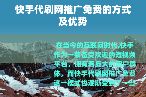 在当今的互联网时代,快手作为一款备受欢迎的短视频平台,拥有着庞大的用户群体,而快手代刷网推广免费这一模式也逐渐受到了一些人的关注。