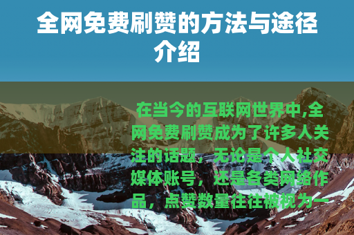 在当今的互联网世界中,全网免费刷赞成为了许多人关注的话题,无论是个人社交媒体账号,还是各类网络作品,点赞数量往往被视为一种重要的衡量标准,了解全网免费刷赞的方式具有一定的意义。