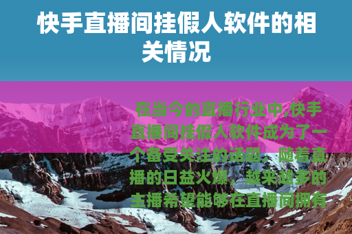在当今的直播行业中,快手直播间挂假人软件成为了一个备受关注的话题,随着直播的日益火爆,越来越多的主播希望能够在直播间拥有更高的人气,从而吸引更多的观众和粉丝,而挂假人软件似乎成为了部分人眼中实现这一目标的一种手段。