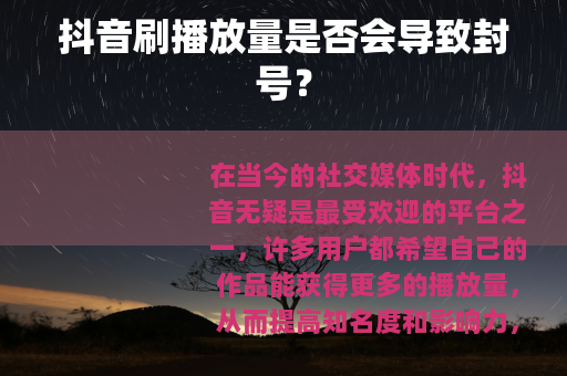 在当今的社交媒体时代,抖音无疑是最受欢迎的平台之一,许多用户都希望自己的作品能获得更多的播放量,从而提高知名度和影响力,一个备受关注的问题是,抖音刷播放量会被封号吗?