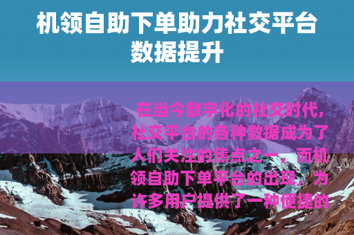 在当今数字化的社交时代,社交平台的各种数据成为了人们关注的焦点之一,而机领自助下单平台的出现,为许多用户提供了一种便捷的方式来提升自己在社交平台上的影响力。