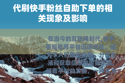 在当今的互联网时代,快手等短视频平台迅速崛起,成为了人们展示自我、分享生活和获取信息的重要渠道,随着平台的发展,一种名为代刷快手粉丝自助下单的服务也悄然出现。