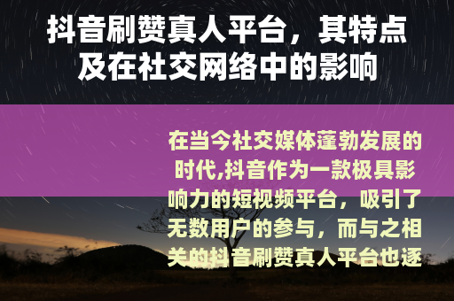 抖音刷赞真人平台,其特点及在社交网络中的影响