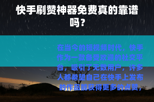 在当今的短视频时代,快手作为一款备受欢迎的社交平台,吸引了无数用户,许多人都希望自己在快手上发布的作品能获得更多的点赞,从而增加曝光度和人气,所谓的“快手刷赞神器免费”便应运而生,吸引了不少人的目光。