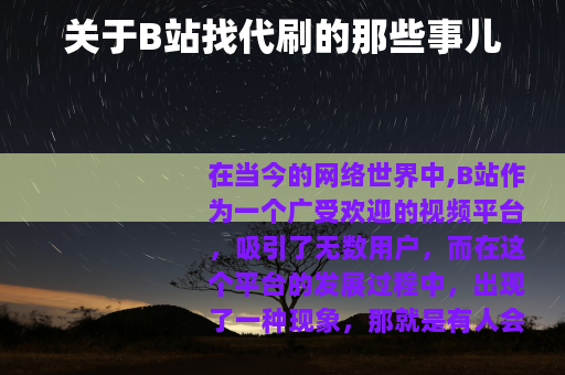 在当今的网络世界中,B站作为一个广受欢迎的视频平台,吸引了无数用户,而在这个平台的发展过程中,出现了一种现象,那就是有人会考虑在B站找代刷。
