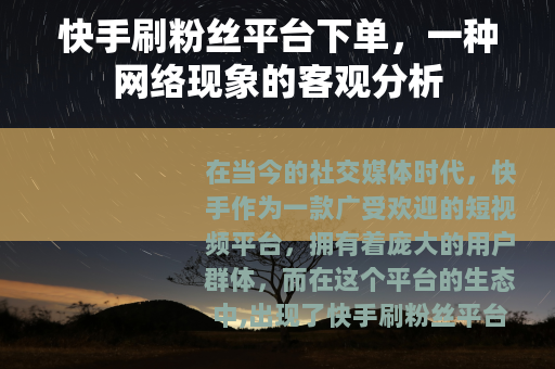 在当今的社交媒体时代,快手作为一款广受欢迎的短视频平台,拥有着庞大的用户群体,而在这个平台的生态中,出现了快手刷粉丝平台下单这样一种现象。