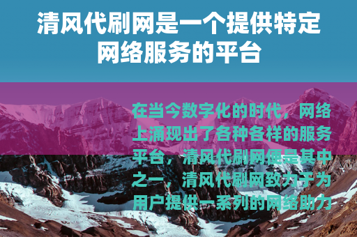 在当今数字化的时代,网络上涌现出了各种各样的服务平台,清风代刷网便是其中之一,清风代刷网致力于为用户提供一系列的网络助力服务,在网络世界中占据着独特的一席之地。