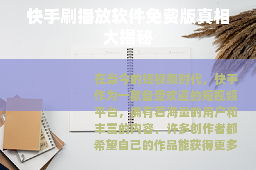 在当今的短视频时代,快手作为一款备受欢迎的短视频平台,拥有着海量的用户和丰富的内容,许多创作者都希望自己的作品能获得更多的播放量,从而提升自己的知名度和影响力,在这种需求下,所谓的快手刷播放软件免费版开始在网络上悄然出现。