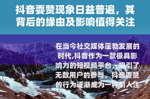 在当今社交媒体蓬勃发展的时代,抖音作为一款极具影响力的短视频平台,吸引了无数用户的参与,抖音耍赞的行为逐渐成为一种引人注目的现象。