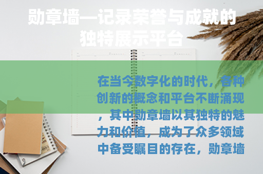 在当今数字化的时代,各种创新的概念和平台不断涌现,其中勋章墙以其独特的魅力和价值,成为了众多领域中备受瞩目的存在,勋章墙,它不仅仅是一面简单的墙,更是一个承载着无数荣誉、成就和回忆的虚拟空间,在不同的场景下发挥着重要的作用,为人们带来了激励、认可和归属感。