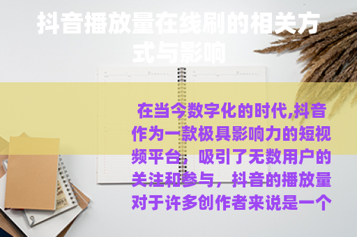 在当今数字化的时代,抖音作为一款极具影响力的短视频平台,吸引了无数用户的关注和参与,抖音的播放量对于许多创作者来说是一个重要的衡量指标,它在一定程度上反映了视频的受欢迎程度和影响力,抖音播放量在线刷这一现象也随之出现并逐渐引起了人们的关注。