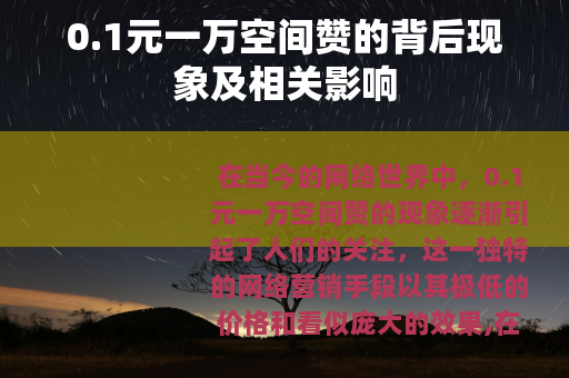0.1元一万空间赞的背后现象及相关影响