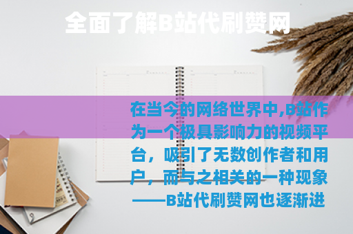在当今的网络世界中,B站作为一个极具影响力的视频平台,吸引了无数创作者和用户,而与之相关的一种现象——B站代刷赞网也逐渐进入了人们的视野。