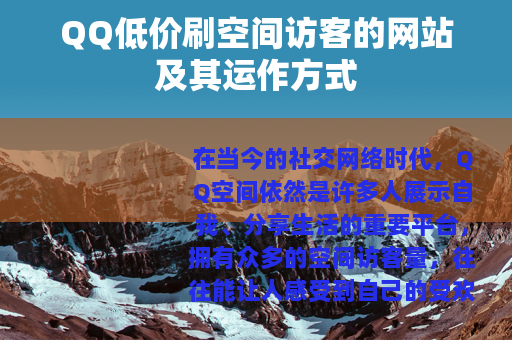 在当今的社交网络时代,QQ空间依然是许多人展示自我、分享生活的重要平台,拥有众多的空间访客量,往往能让人感受到自己的受欢迎程度和社交影响力,一些声称可以提供低价刷QQ空间访客服务的网站应运而生。