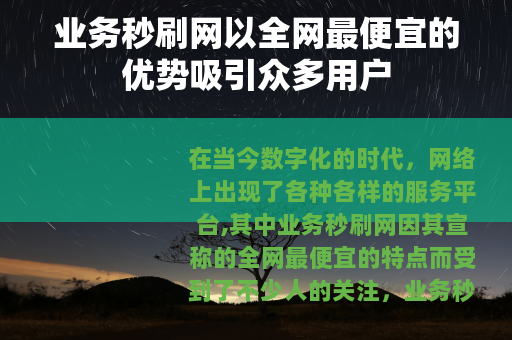 在当今数字化的时代,网络上出现了各种各样的服务平台,其中业务秒刷网因其宣称的全网最便宜的特点而受到了不少人的关注。