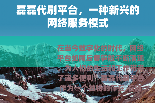 在当今数字化的时代,网络平台如雨后春笋般不断涌现,为人们的生活和工作带来了诸多便利,磊磊代刷平台作为一个独特的存在,在网络世界中逐渐崭露头角。