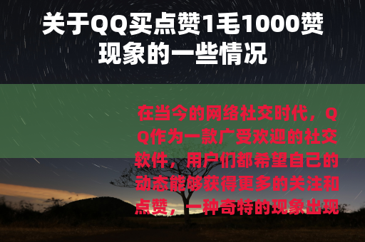 在这个充满诱惑的网络世界里,QQ买点赞1毛1000赞的现象虽然有其存在的市场,但我们也应该保持理性和清醒的头脑,我们要明白,社交的本质是人与人之间的联系和情感交流,而不是单纯的数字游戏,我们可以通过不断提升自己的社交能力,发布更有意义和有趣的内容,来吸引真正的朋友和关注,而不是通过购买点赞这种捷径来获取虚假的繁荣,我们才能在QQ这个社交平台上,建立起真正健康、积极、有意义的社交关系,让我们的网络生活变得更加丰富多彩。