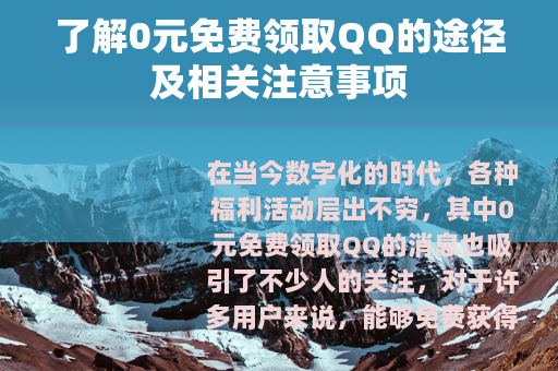 在当今数字化的时代,各种福利活动层出不穷,其中0元免费领取QQ的消息也吸引了不少人的关注,对于许多用户来说,能够免费获得一个QQ账号或者与QQ相关的增值服务,无疑是一件极具吸引力的事情。