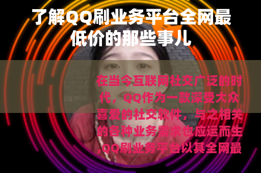 在当今互联网社交广泛的时代,QQ作为一款深受大众喜爱的社交软件,与之相关的各种业务需求也应运而生,QQ刷业务平台以其全网最低价的宣传吸引了不少人的目光。