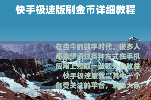在当今的数字时代,很多人都希望通过各种方式在手机应用上赚取一些额外的收益,快手极速版就是其中一个备受关注的平台,就为大家带来一份快手极速版刷金币的教程,帮助大家更好地利用这个平台获取金币。