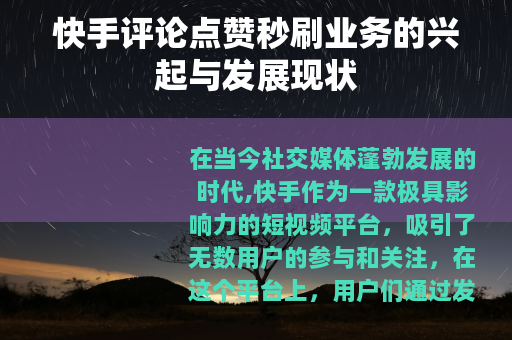 在未来,随着社交媒体行业的不断发展和规范,快手评论点赞秒刷业务可能会面临更多的挑战和变革,但无论如何,只有坚持真实、公平和创新的原则,才能让快手平台以及整个社交媒体行业持续健康地发展下去,为用户提供更加优质、丰富和有价值的内容和服务。