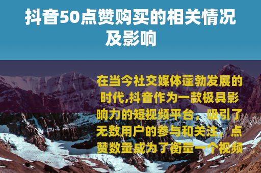 在当今社交媒体蓬勃发展的时代,抖音作为一款极具影响力的短视频平台,吸引了无数用户的参与和关注,点赞数量成为了衡量一个视频受欢迎程度的重要指标之一,便出现了抖音的50点赞购买这样一种现象。