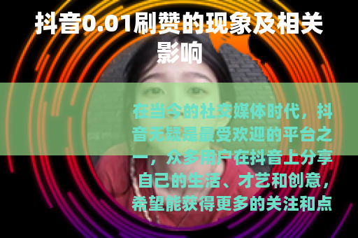 在当今的社交媒体时代,抖音无疑是最受欢迎的平台之一,众多用户在抖音上分享自己的生活、才艺和创意,希望能获得更多的关注和点赞,而其中一种现象——抖音0.01刷赞,也逐渐进入了人们的视野。