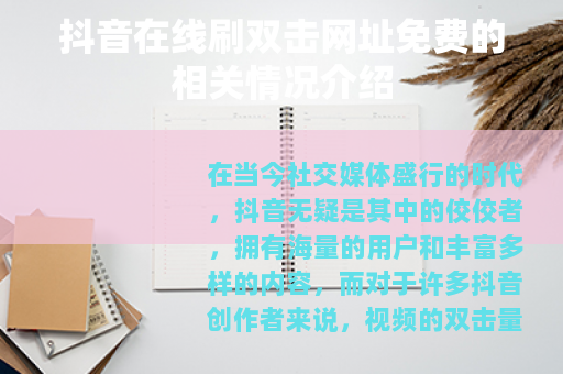 在当今社交媒体盛行的时代,抖音无疑是其中的佼佼者,拥有海量的用户和丰富多样的内容,而对于许多抖音创作者来说,视频的双击量是衡量其作品受欢迎程度的一个重要指标,抖音在线刷双击网址免费这样的话题便引起了不少人的关注。