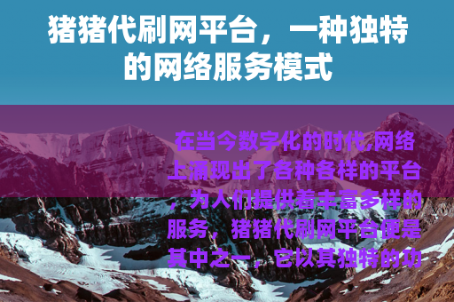 在当今数字化的时代,网络上涌现出了各种各样的平台,为人们提供着丰富多样的服务,猪猪代刷网平台便是其中之一,它以其独特的功能和特点,在网络世界中占据了一席之地。