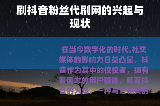 在当今数字化的时代,社交媒体的影响力日益凸显,抖音作为其中的佼佼者,拥有着庞大的用户群体,随着抖音的火爆,一种与之相关的现象——刷抖音粉丝代刷网也逐渐兴起。
