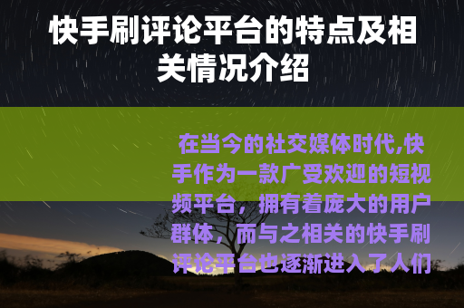 在当今的社交媒体时代,快手作为一款广受欢迎的短视频平台,拥有着庞大的用户群体,而与之相关的快手刷评论平台也逐渐进入了人们的视野。