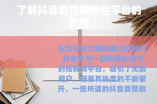 在当今社交媒体盛行的时代,抖音作为一款极具影响力的短视频平台,吸引了无数用户,随着其热度的不断攀升,一些所谓的抖音耍赞刷粉丝平台也悄然出现。