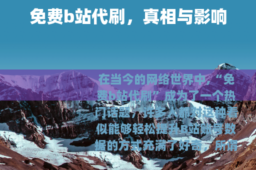 在当今的网络世界中,“免费b站代刷”成为了一个热门话题,许多人都对这种看似能够轻松提升B站账号数据的方式充满了好奇。