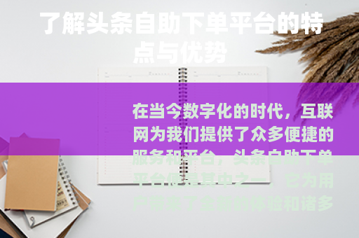 头条自助下单平台是一个充满活力和创新的平台,它在多个方面都展现出了巨大的优势和潜力,我们要以积极的态度去关注和参与其发展,充分利用平台提供的各种机会,实现自身的发展和突破,我们也要共同努力,为平台的健康、稳定发展贡献自己的力量,让头条自助下单平台在未来的日子里能够更好地服务于社会,为人们的生活和工作带来更多的便利和价值,成为推动经济发展和社会进步的重要力量,在这个数字化的时代,头条自助下单平台无疑是我们走向更加便捷、高效生活的有力助手,我们要紧紧抓住这个机遇,共同开创美好的未来。
